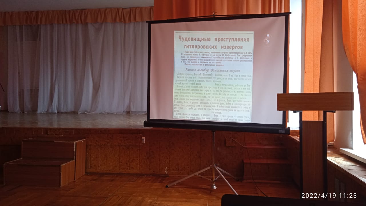 Школьникам был показан масштаб и характер преступлений нацистов в отношении мирных жителей. Ребята пытались дать правовую оценку с исторической и современной точек зрения, раскрывали понятия «геноцид», «нацисты».