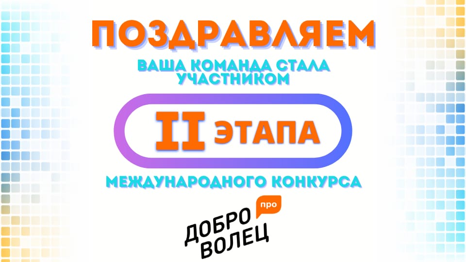 14 декабря команда «ЗДОРОВОЕ ПОКОЛЕНИЕ» получила приглашение на II этап, где будет проходить реализация проектов международного конкурса "ДоброВолец-ПРО".