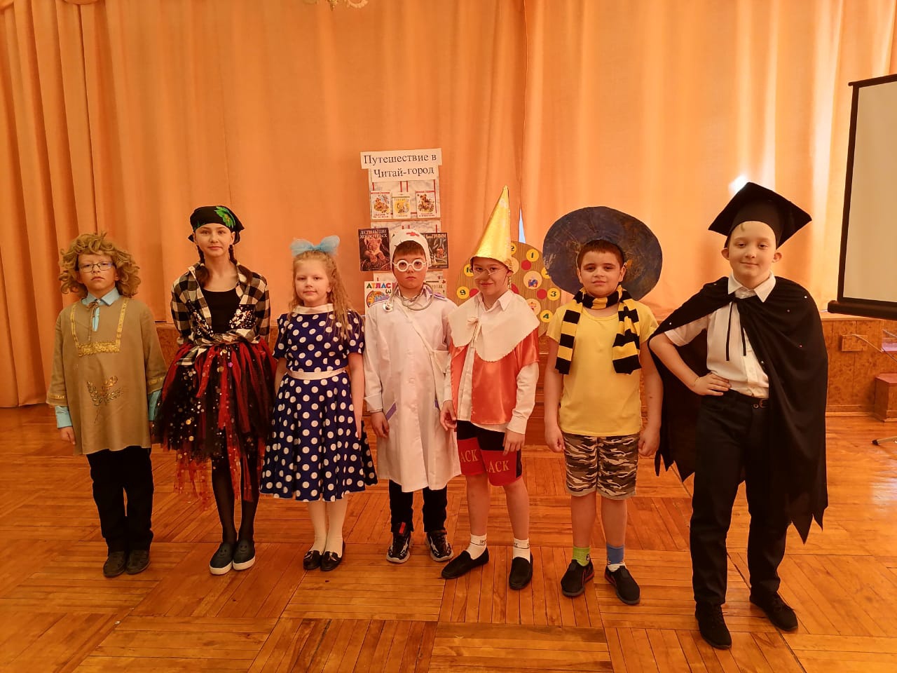 На праздник к ребятам пришли сказочные герои! Это - Волшебник Книгочей,Леший,Почтальон, Баба-Яга,Незнайка,Буратино,Доктор Айболит , Мальвина! Они устроили настоящие испытания для первоклассников. Вместе с героями дети совершили путешествие в мир книги, где познакомились с «Правилами пользования библиотекой», с тем как записывают читателей в библиотеку, как расставлены книги на полках. Также ребята узнали, что библиотека делится на два отделения: абонемент и читальный зал. Ребята активно участвовали в конкурсах, правильно называли сказки и быстро справлялись со всеми заданиями.В заключение праздника сказочные герои подарили классу Золотой Ключ.