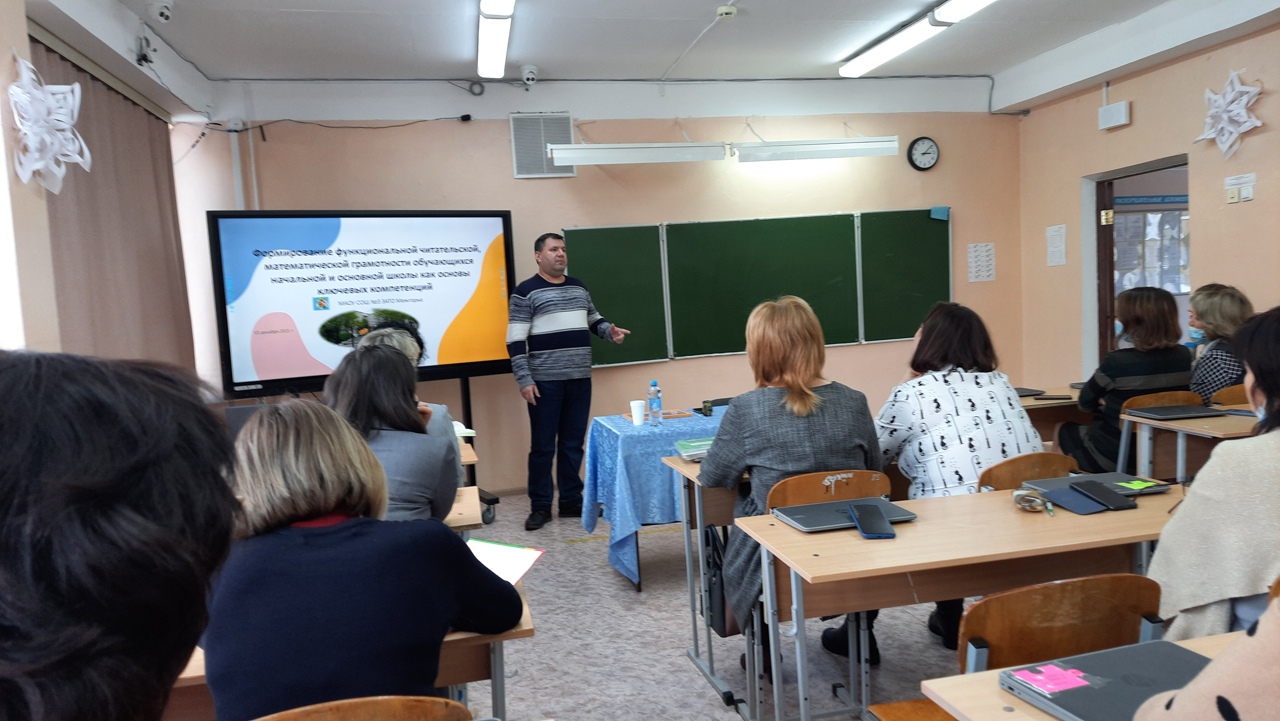 23 декабря 2021 г. в рамках инновационной деятельности ЦНППМПР ГБОУ УМПК, на базе нашей школы состоялся выездной методический семинар под руководством преподавателя ЦНППМПР Банникова А.Л. В ходе выступления Банникова А.Л. , были обозначены проблемы и перспективы школьной инновационной работы. Особенности работы по внедрению функциональной грамотности в образовательный процесс, задачи, стоящие перед современной школой. Вопросы, поднятые педагогическим коллективом, обозначили актуальные проблемы предметной деятельности. В ходе работы были определены основные направления инновационной деятельности школы и работы инновационной площадки по внедрению функциональной грамотности на период до 2024 г.