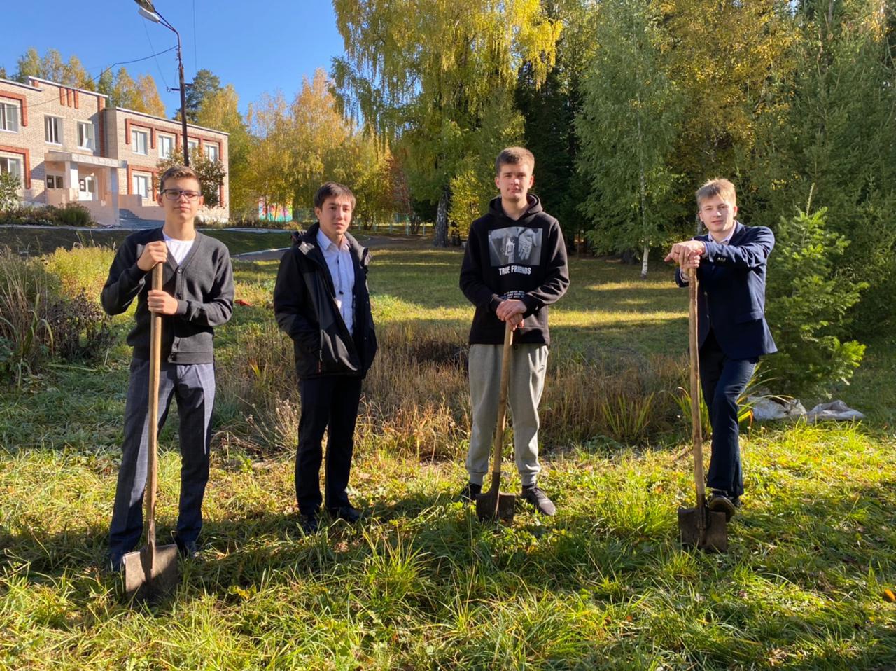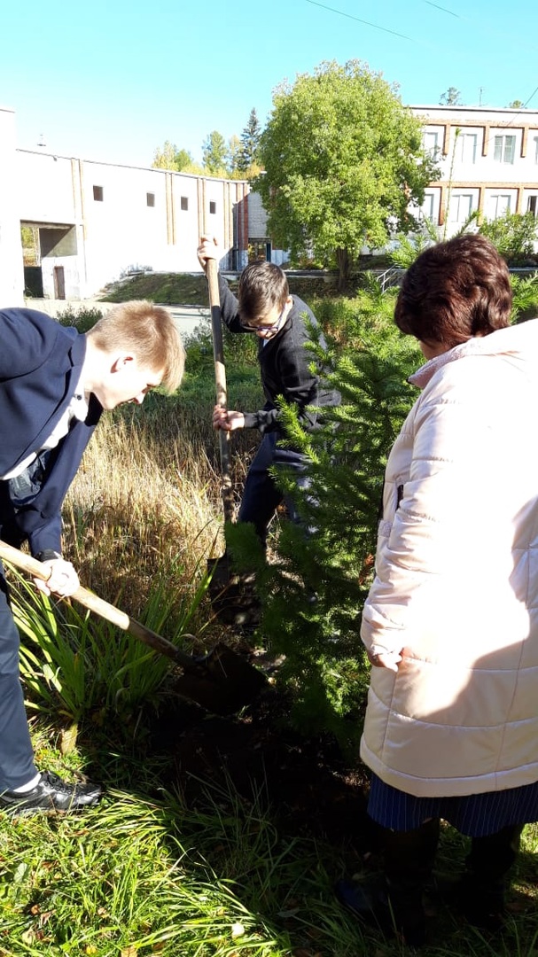 Сегодня в школе была организована и проведена акция в память наших замечательных выпускников, чьи имена вписаны в историю нашего города: Юмагужина Радика- участника афганской войны - и Еремицы Максима - участника боевых действий в Чечне. На пришкольном участке волонтёрами школьной организации «Энергия сердец» Петровым А., Мельниковым К., Багреем Д., Кильдиным В и членом школьного патриотического объединения « Мы патриоты» Кудряшовым Р были высажены 3 ёлочки.