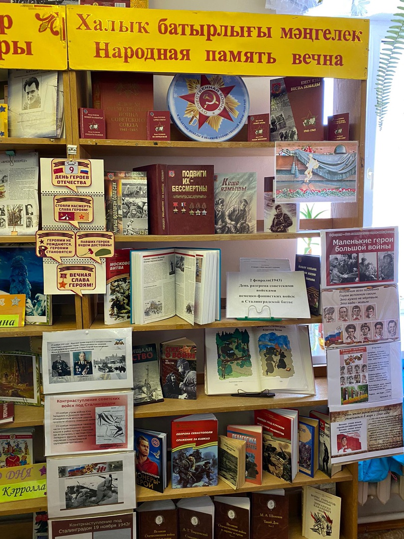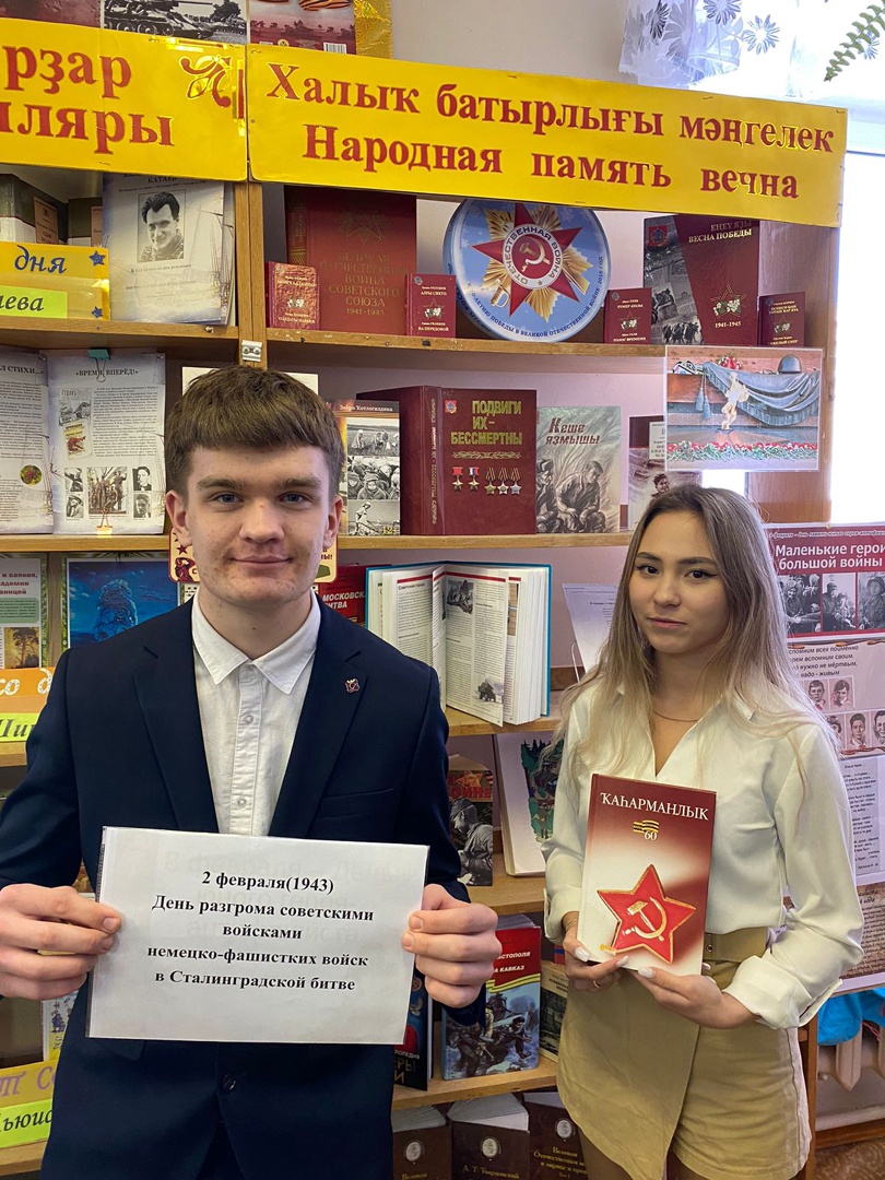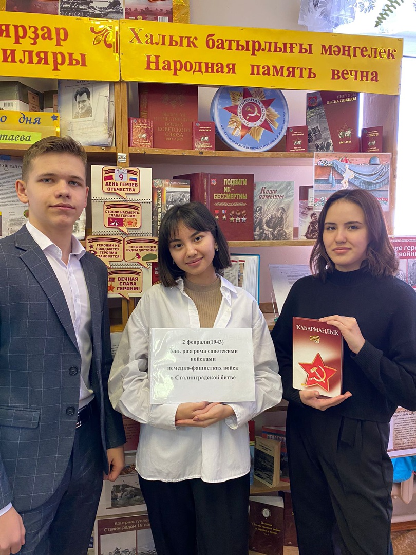 В школьной библиотеке волонтёры школы и члены ВПО "Мы патриоты" организовали выставку, посвящённую окончанию Сталинградской битвы.
