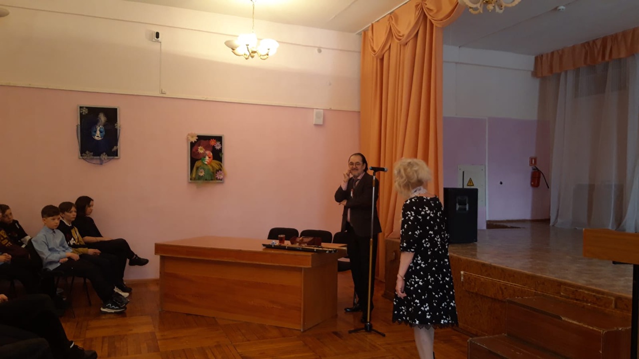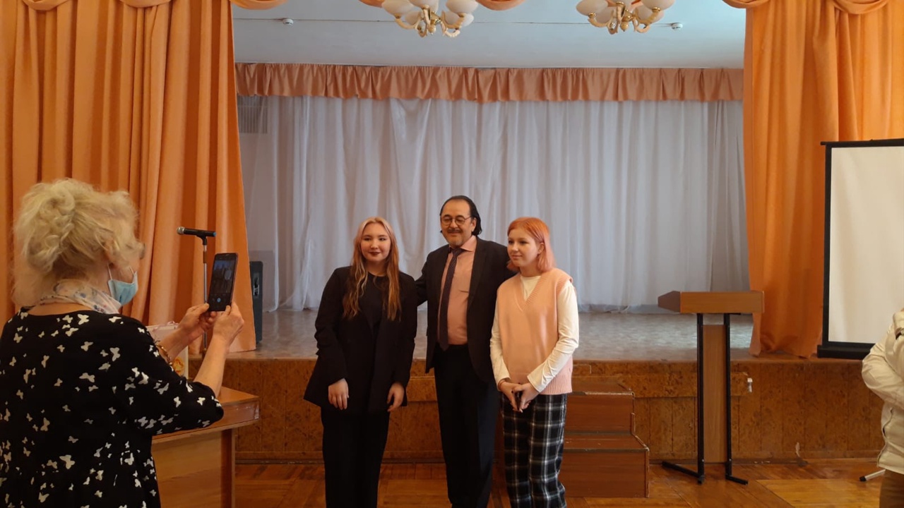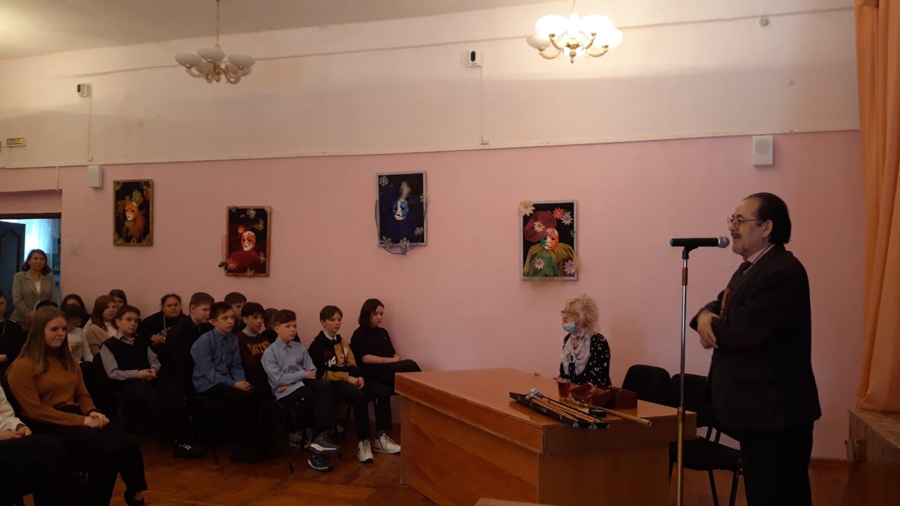 Сегодня, 4 апреля в стенах нашей школы состоялась встреча учащихся 5 б,6 б,8 а класса с создателем Национального оркестра народных инструментов (НОНИ) Башкирской государственной филармонии им. Х. Ахметова, бывшим художественным руководителем, а ныне – штатным музыкантом-духовиком, заслуженным артистом Российской Федерации, народным артистом Башкортостана, лауреатом многочисленных международных, всероссийских и региональных конкурсов и фестивалей Рамилом Гайзуллиным.