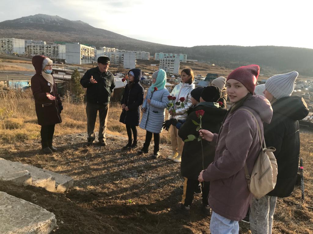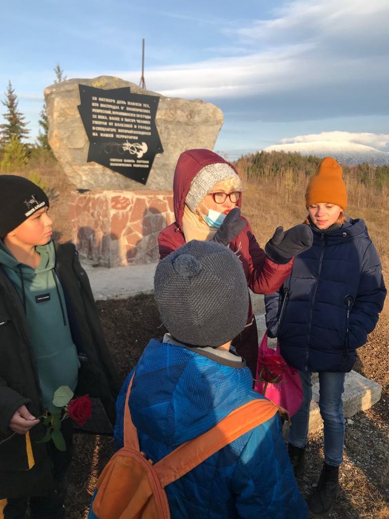 Учащиеся 5 "А" класса одни из первых с классным руководителем Баимовой З.В и учителем истории Галиуллиной Р.И провели митинг у памятника жертвам политических репрессий накануне 27 октября.